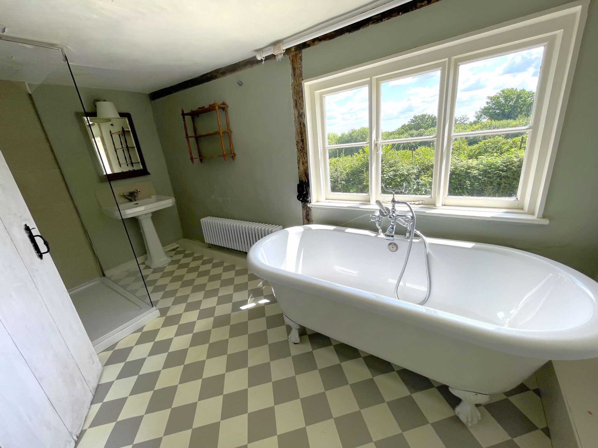 Family bathroom with claw bath and separate shower enclosure