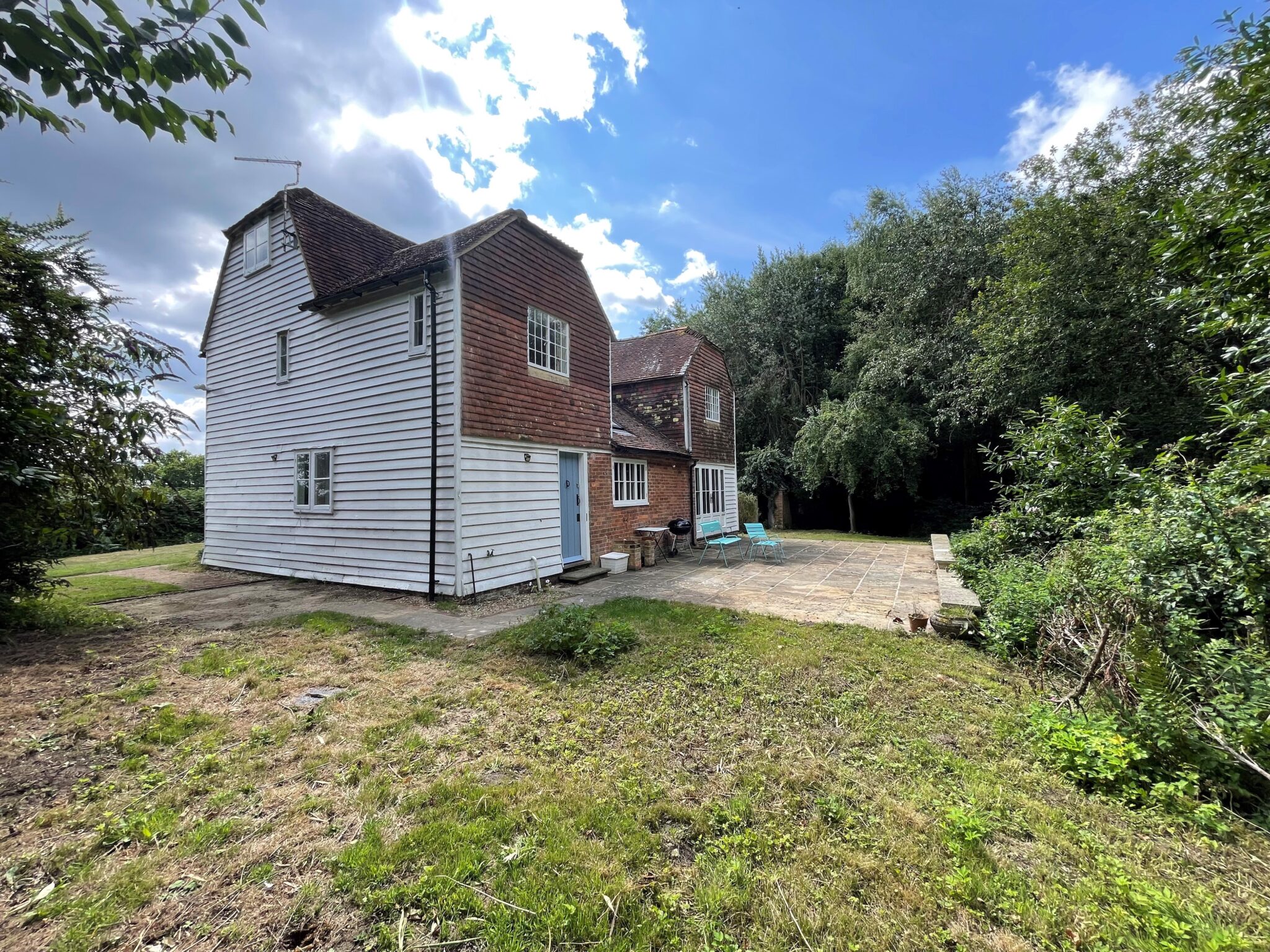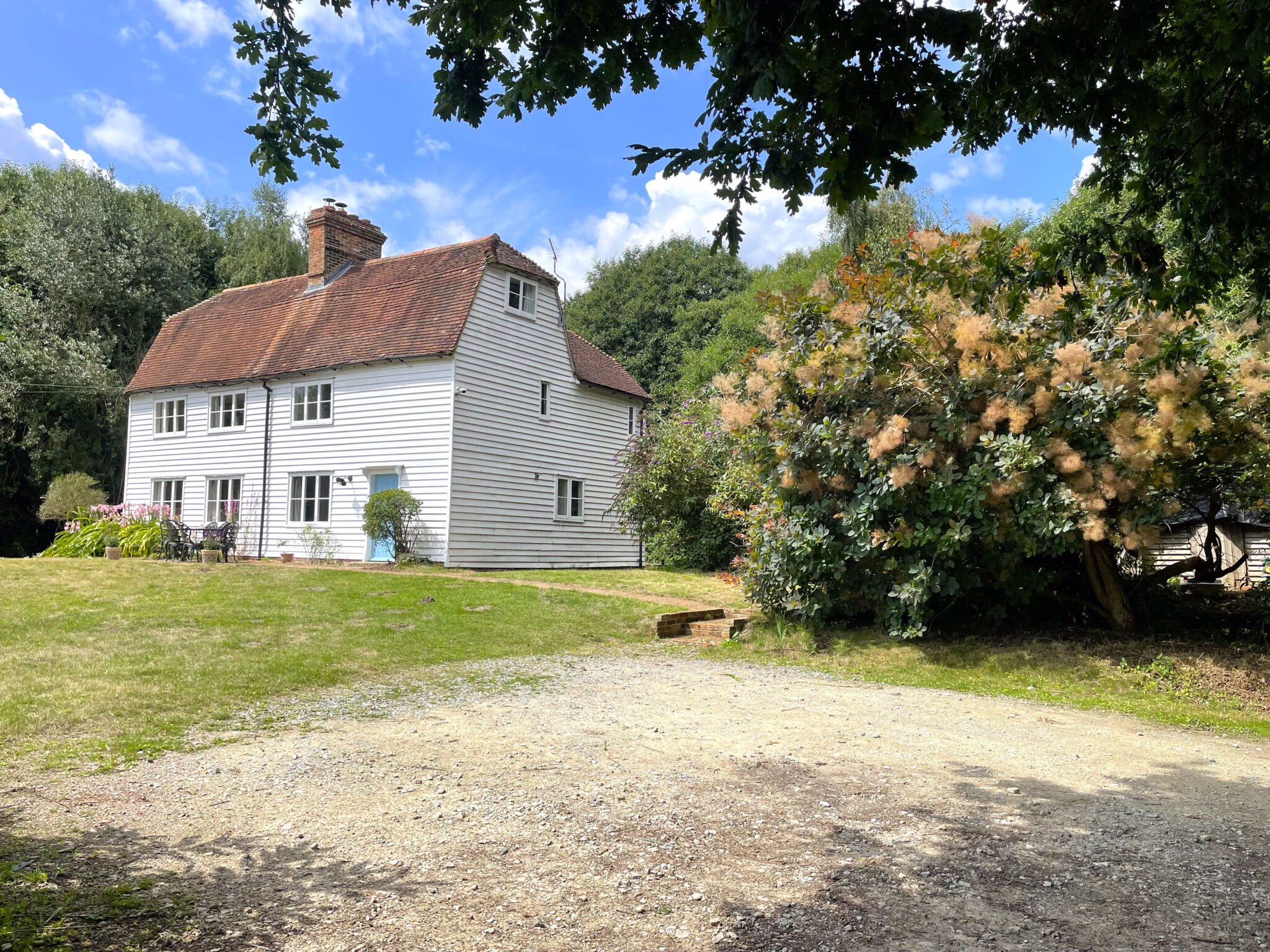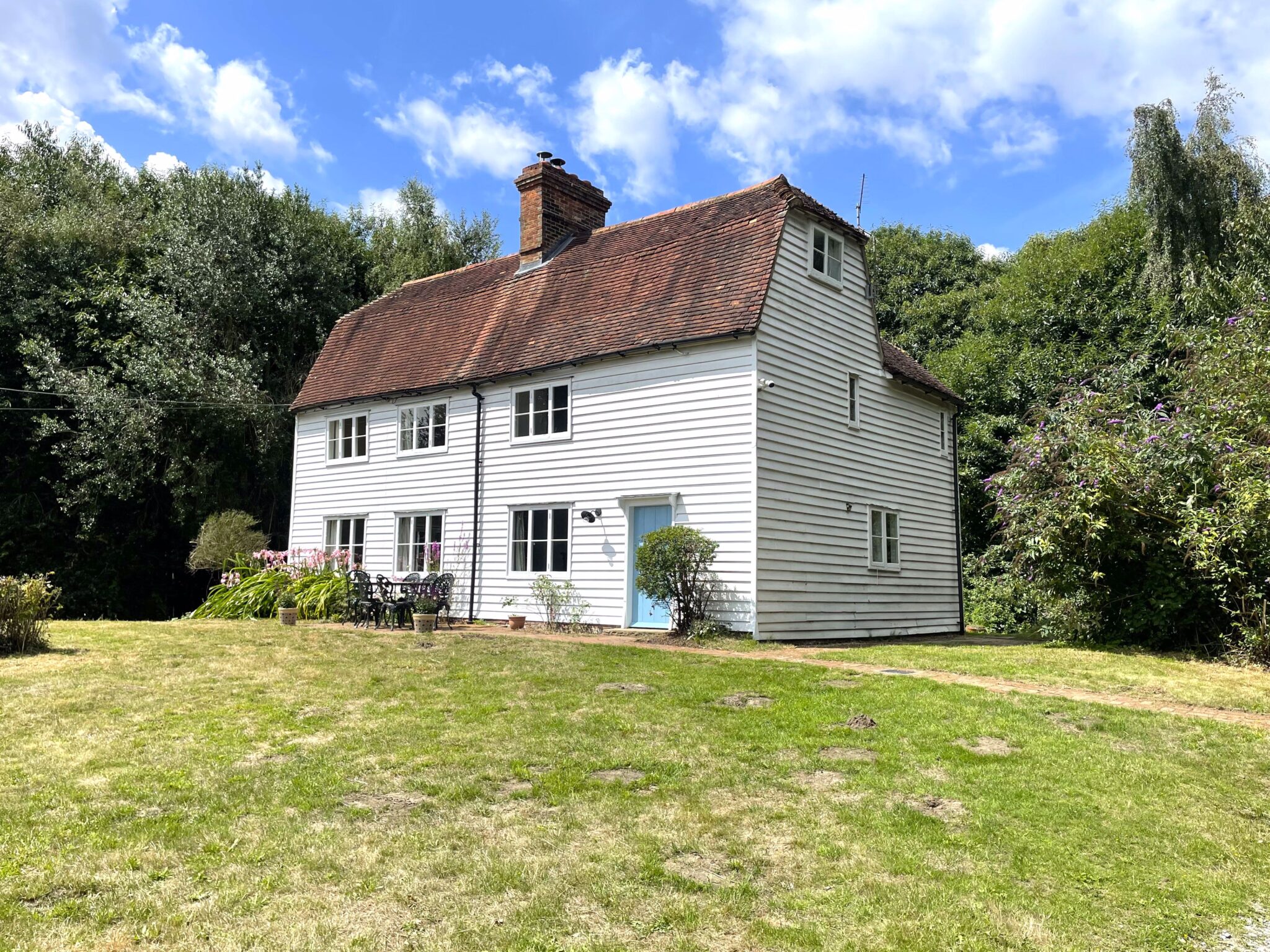 A lovely, five bedroomed, Grade II listed house set in a glorious isolated spot with far reaching views. This character home offers total seclusion with a large garden and private woodland to the rear to enjoy. The property is approached via a long track, winding through the surrounding orchards. CSCA.