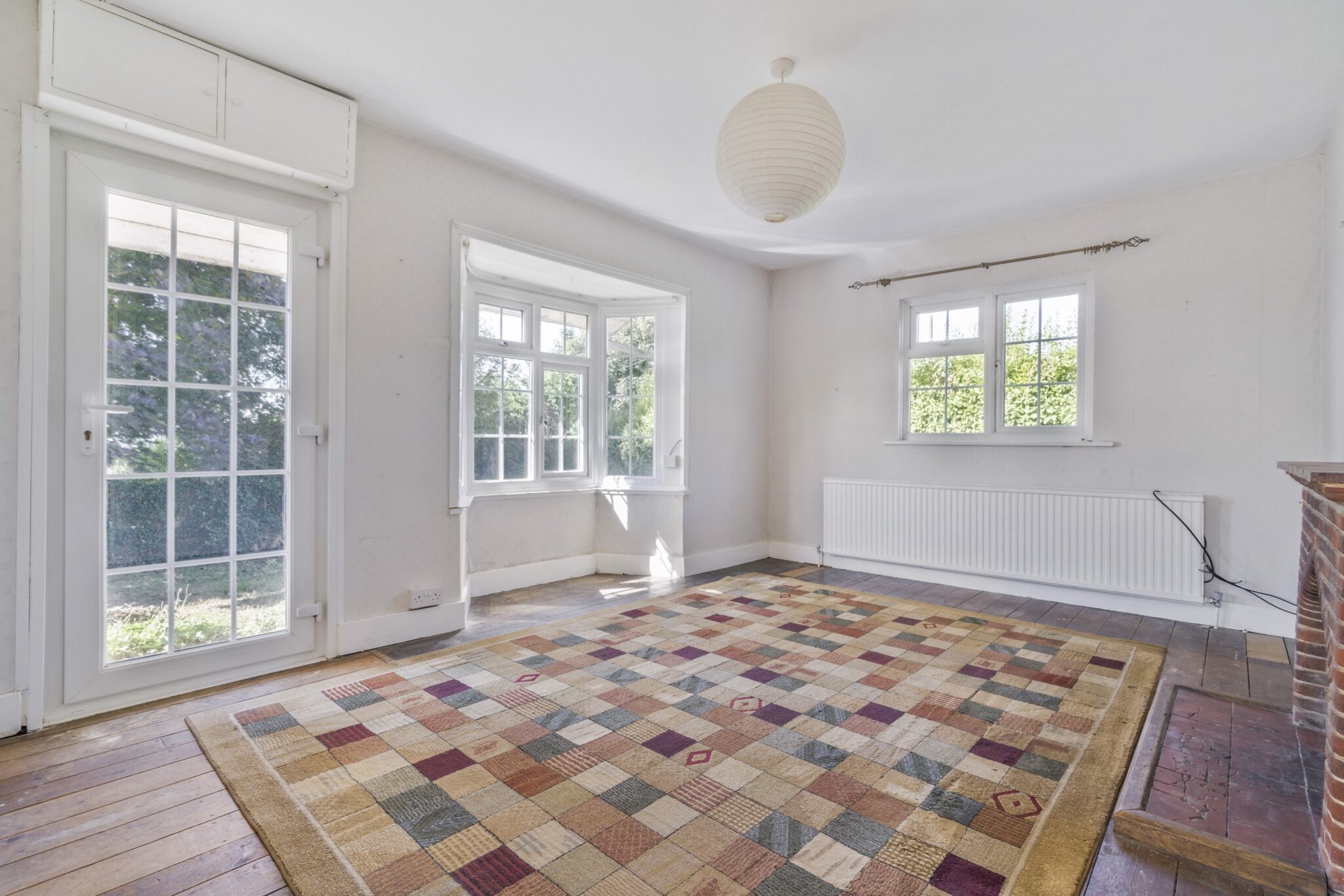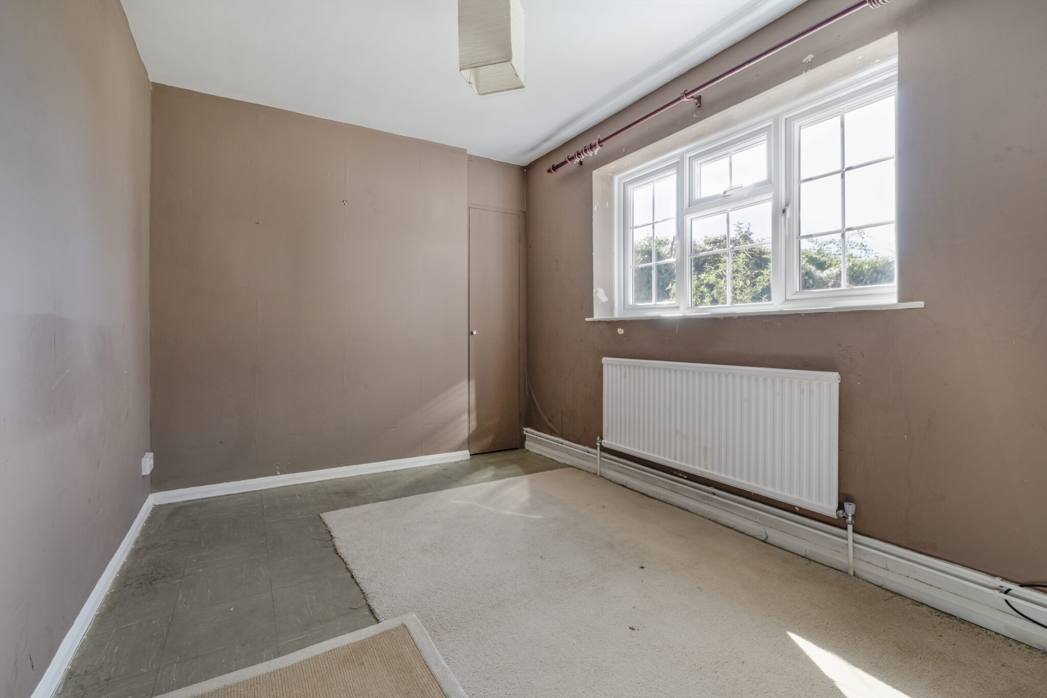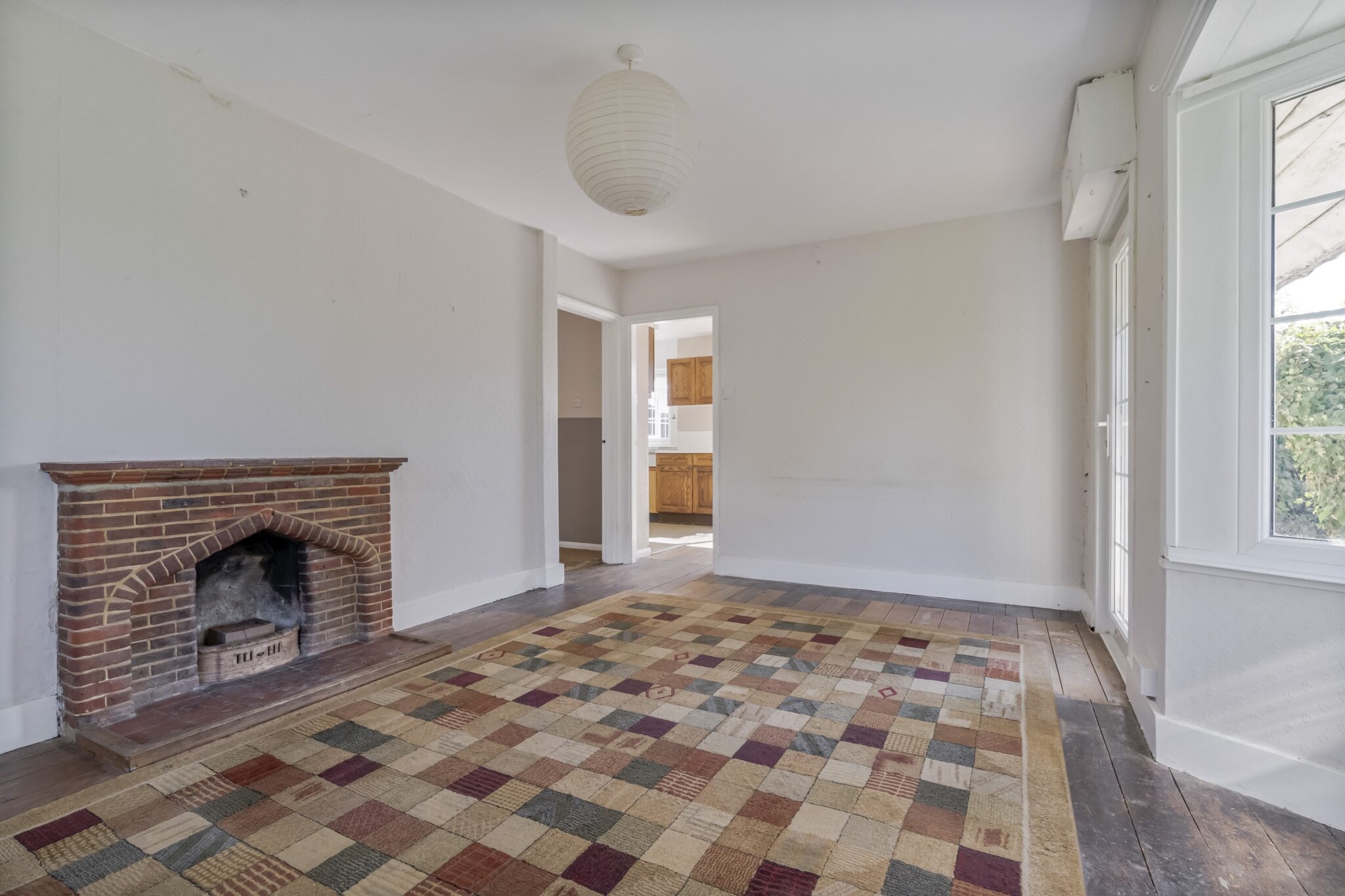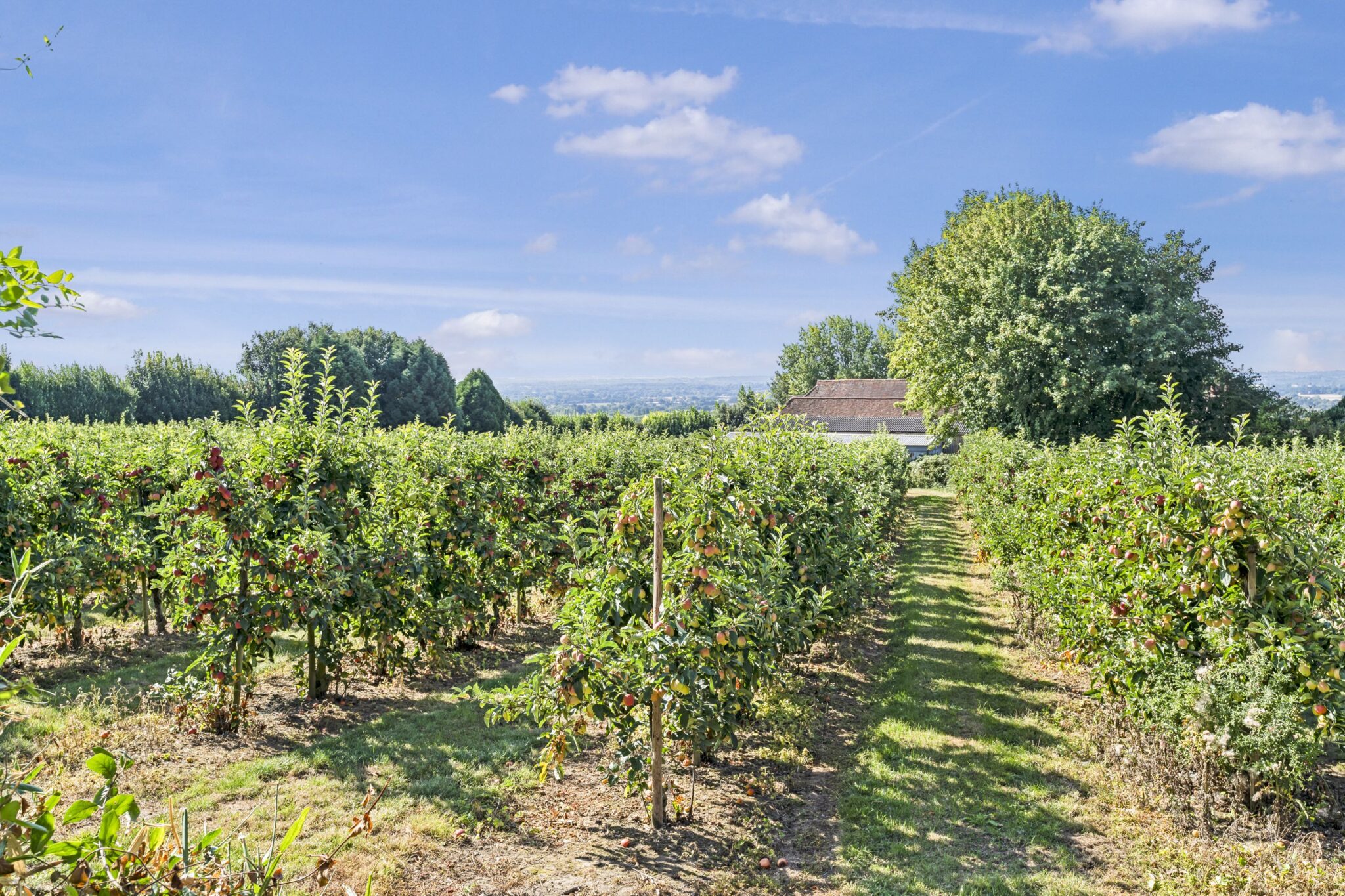 Outside, an open access onto a drive, providing parking and leading up to a detached single concrete section garage. The established garden is laid to lawn running to all sides, bordered by hedging including an old timber shed. Beyond the garden is an area of agricultural land, currently planted as orchard, extending to approximately 1 acre included within the sale. We are informed by the seller this parcel of land is currently let to the neighbouring fruit farmer and will be available March 2027 latest. Fine elevated views are enjoyed out across the Wealden countryside.