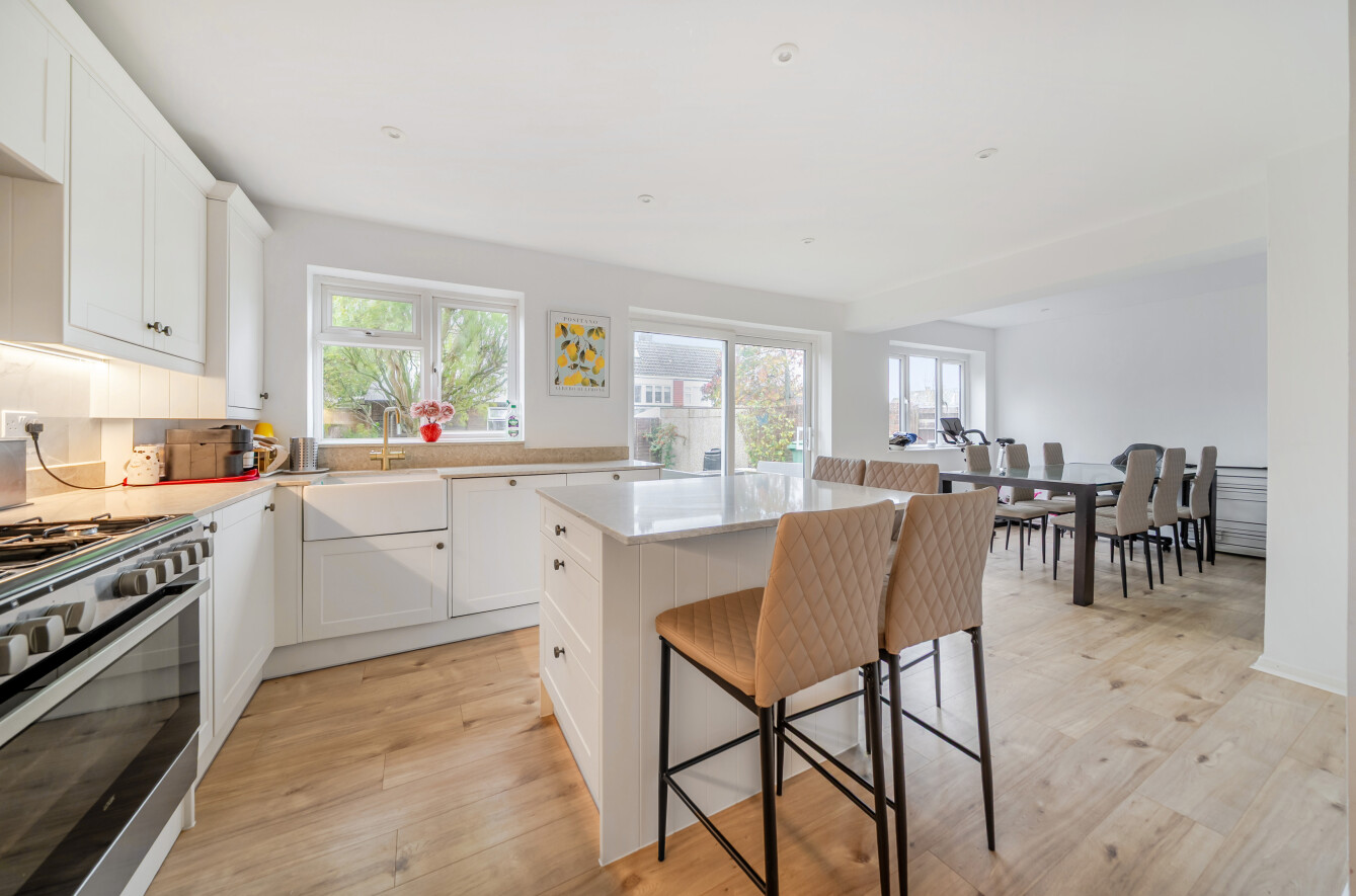 A well presented and ground floor extended, semi-detached family house, providing three bedroom accommodation including a beautifully fitted kitchen/dining room with island and newly fitted shower room, complemented by a front and rear garden, on a corner plot with a single garage and two parking spaces, all occupying a central village location, a level walk of the mainline station, Sainsbury’s supermarket and high street amenities. Cranbrook School Catchment area.