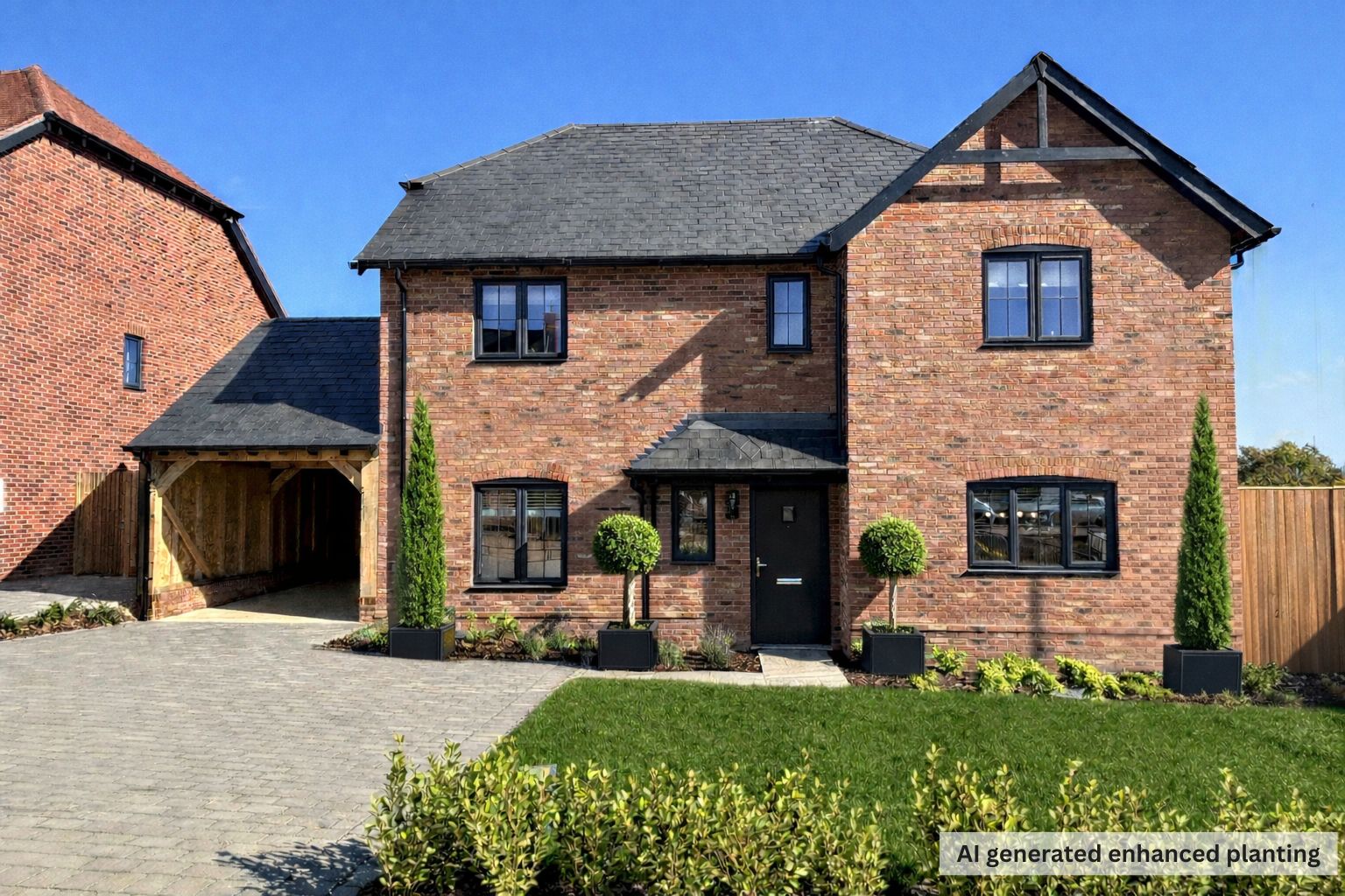 Externally, the Chartwell continues to impress. A private driveway for two vehicles and an attractive oak-framed car port provide both convenience and character. The fully turfed rear garden is complemented by a substantial and versatile outbuilding — a standout feature that can be transformed to suit your lifestyle. Whether you envision a fully equipped outdoor kitchen for summer entertaining, a private home office away from the main house, a personal gym, creative studio or something entirely your own, the flexibility is yours to define.