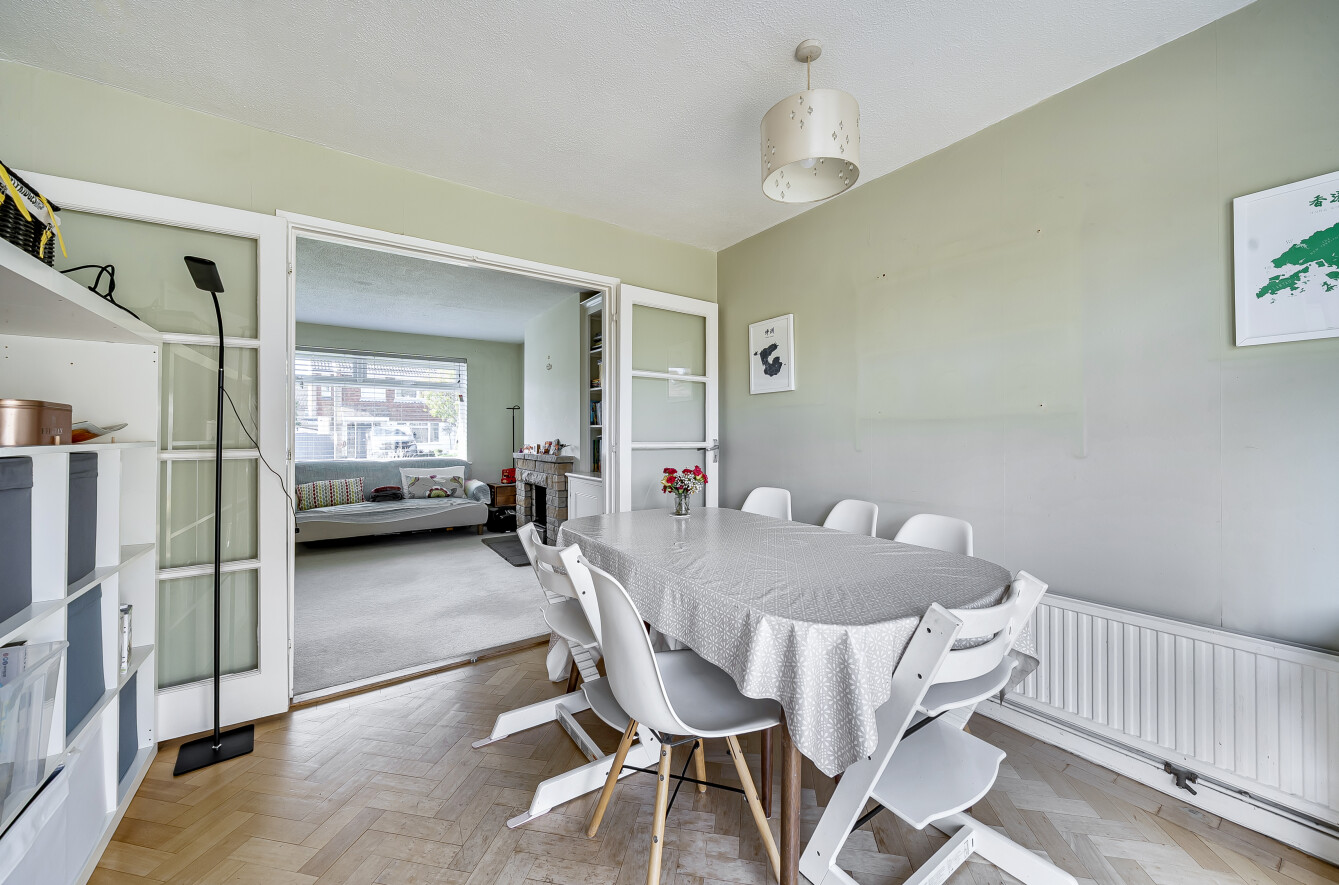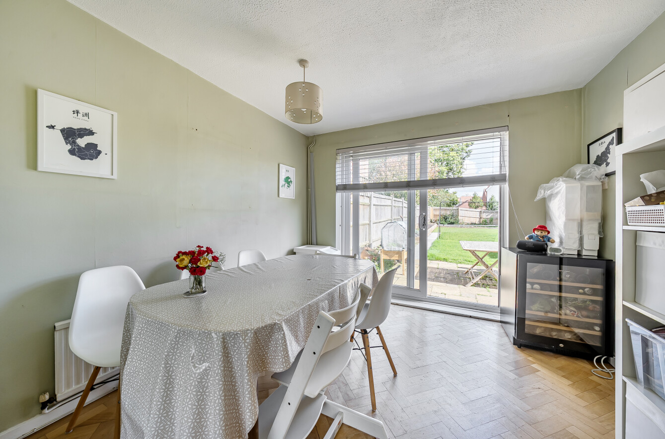 Entering the property through the front door you arrive in a central hallway with a living room to your left. The living room is a well-proportioned space with an open fireplace and doors leading into the dining room at the rear of the property. The dining room has sliding doors leading directly to the garden and another door takes you into the kitchen. The dual aspect kitchen has ample worktop space, integrated appliances including wall mounted oven and microwave and a door going leading directly out to the garden.