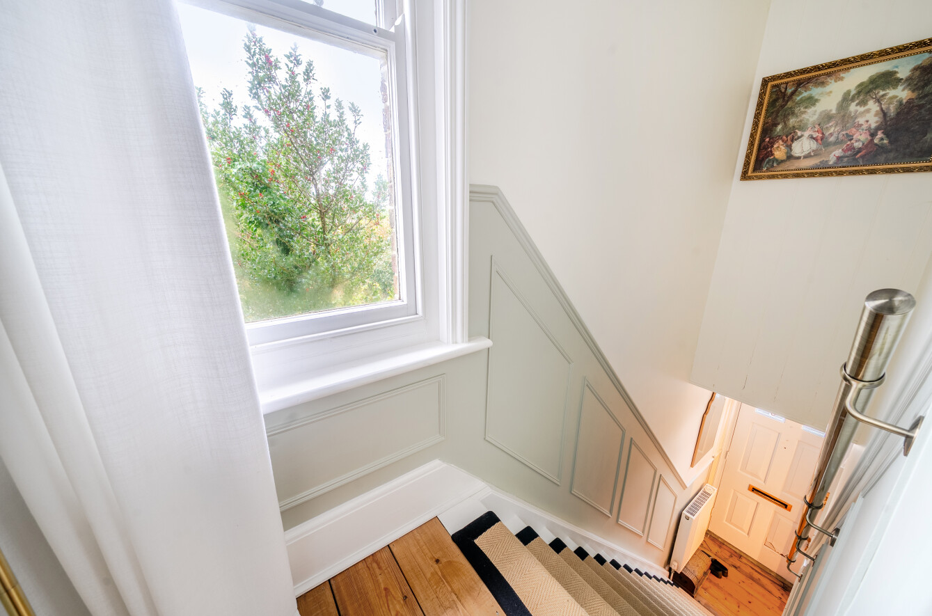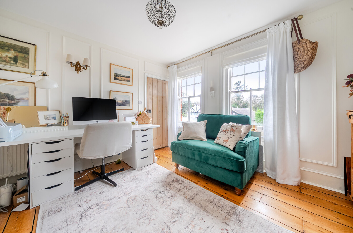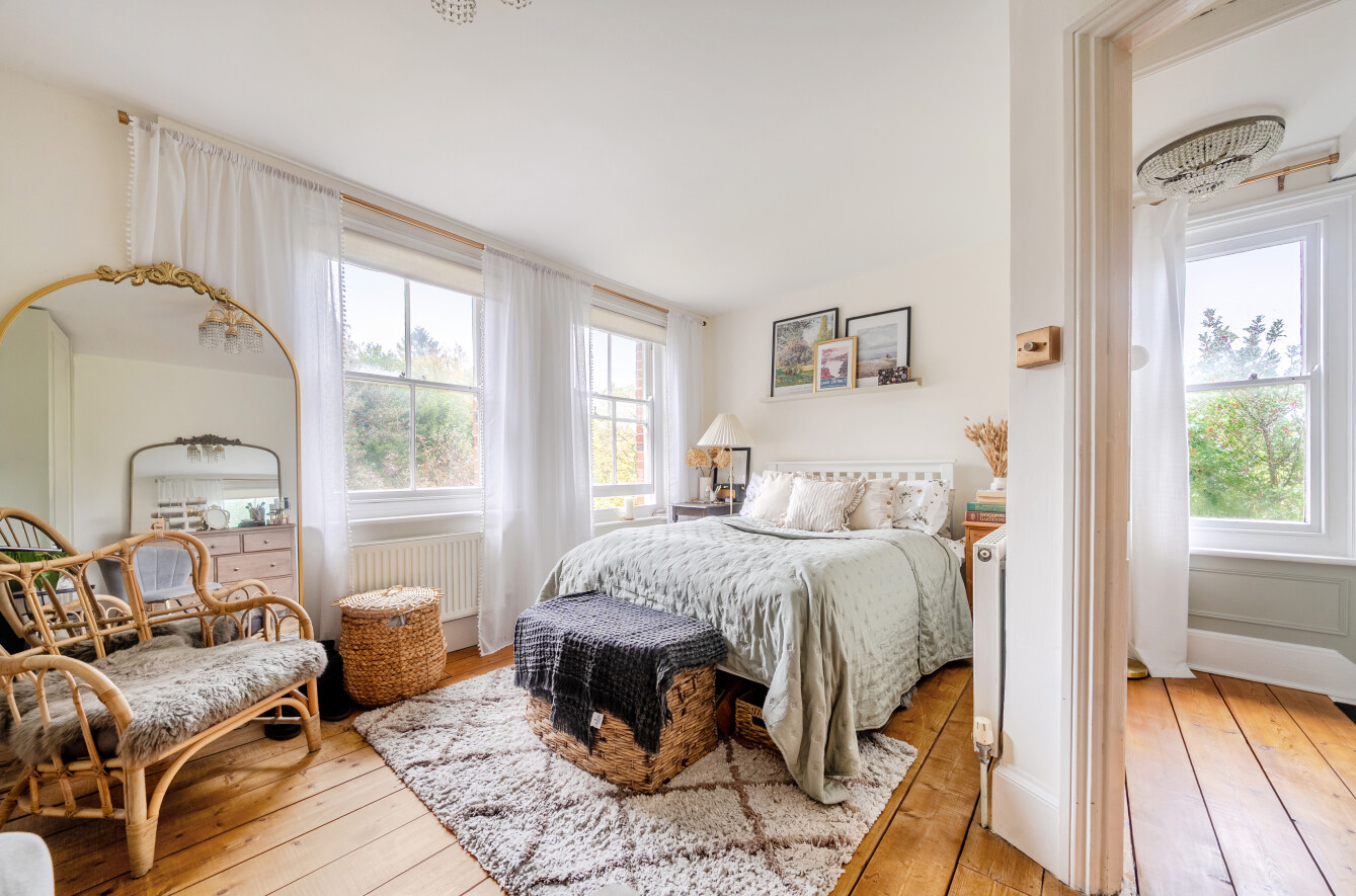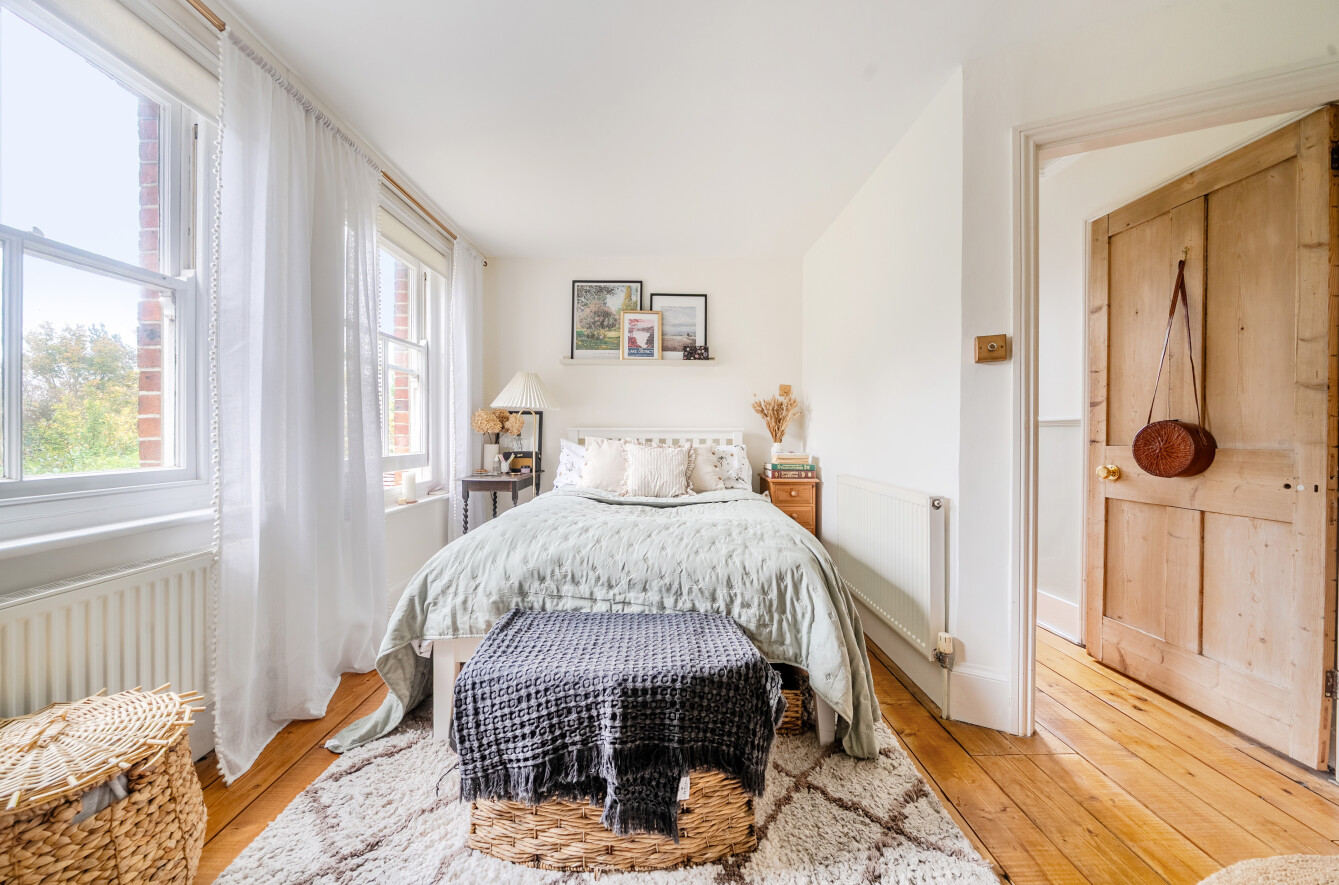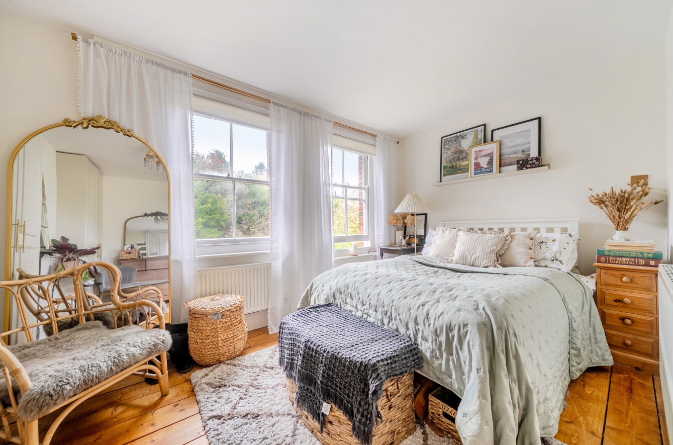 Upstairs are two generous double bedrooms; the principal bedroom benefits from its own en-suite cloakroom with a WC and wash basin. Every room feels light, calm and beautifully finished.