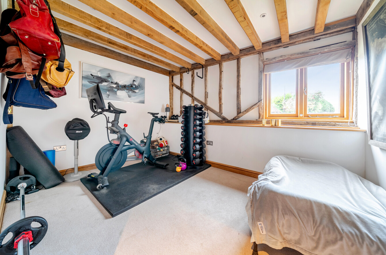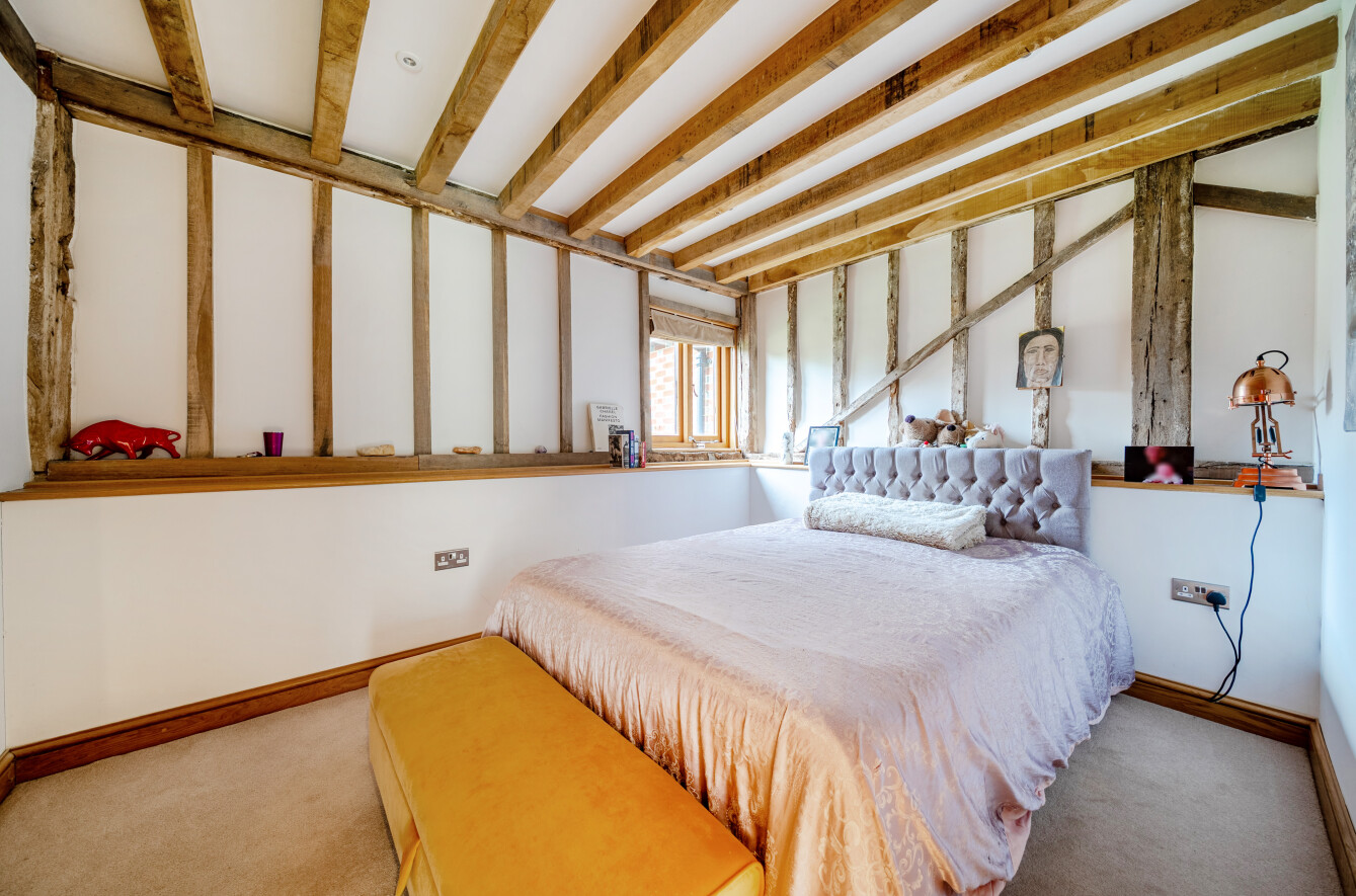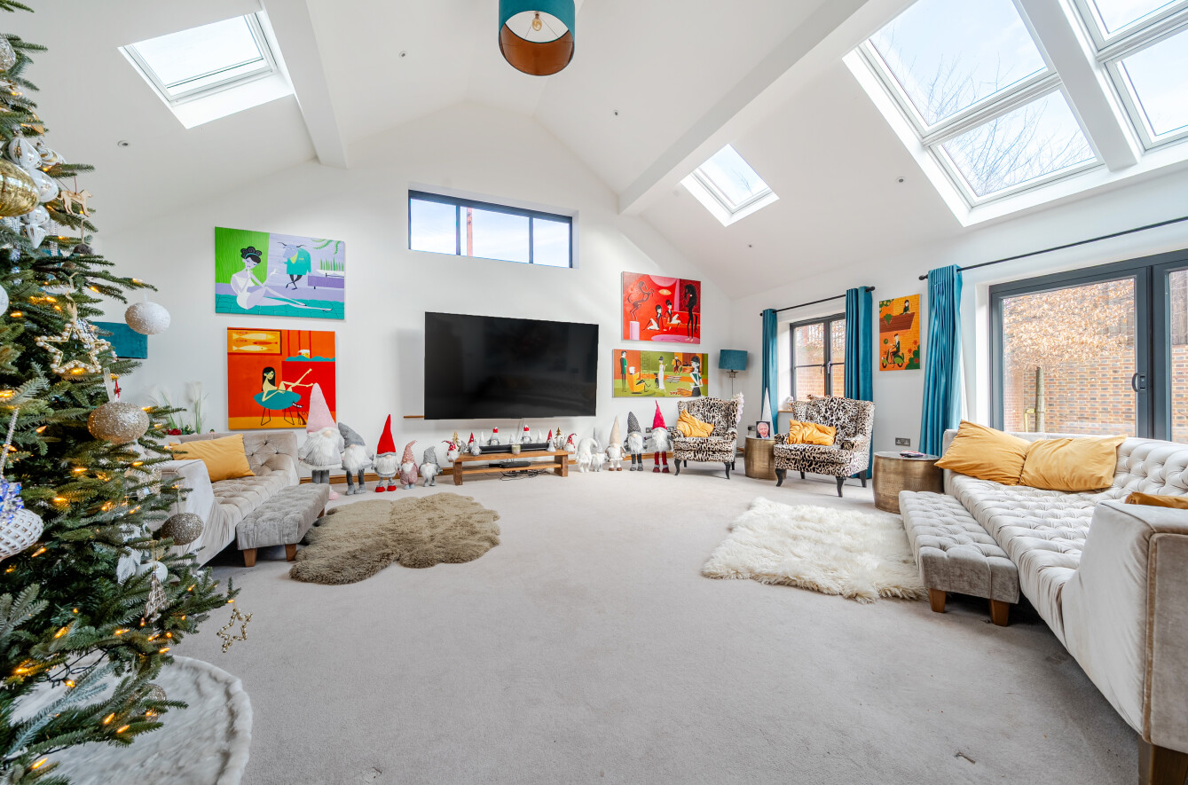 The Old Barn is a Grade II listed family home forming the centrepiece of an exclusive development created from the former farm buildings of New House Farm. Once a cattle barn, the building’s character features have been preserved and enhanced through a meticulous 2019 conversion. The result is an impressive modern home of about 3,537 sq. ft. arranged primarily across the ground floor with three mezzanine rooms, underfloor heating throughout the main level and well-proportioned spacious rooms.