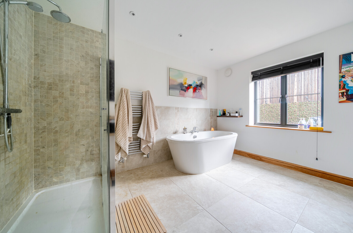 The principal bedroom suite is on the ground floor, with dressing area, ensuite bathroom and door to the rear garden. Bedroom two has an ensuite shower room and a door to the courtyard garden. Bedrooms three and four are served by an adjacent shower room.