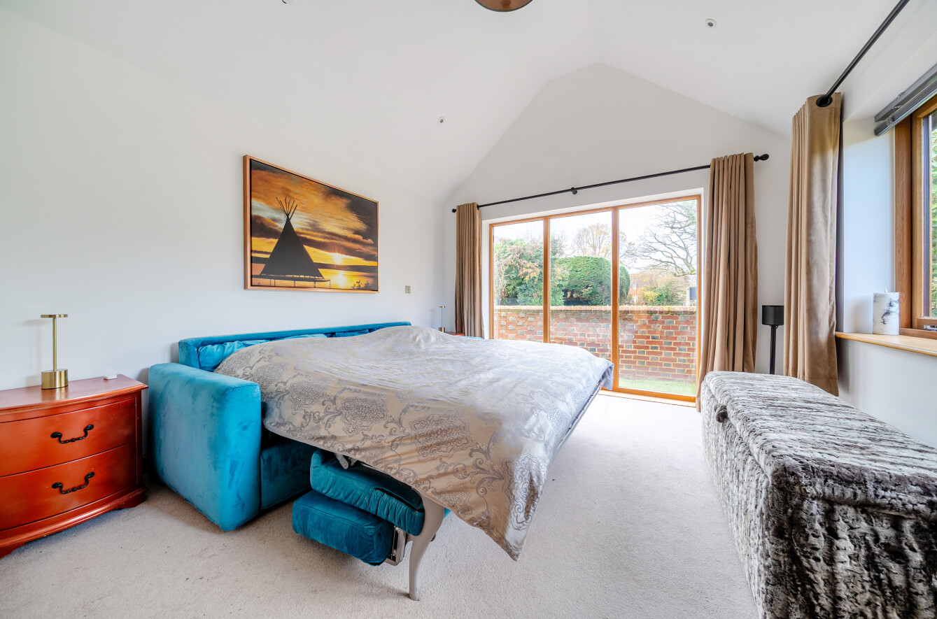 A large triple-aspect sitting room lies to the western end of the house, also with bi-fold doors to the rear and access to the courtyard.