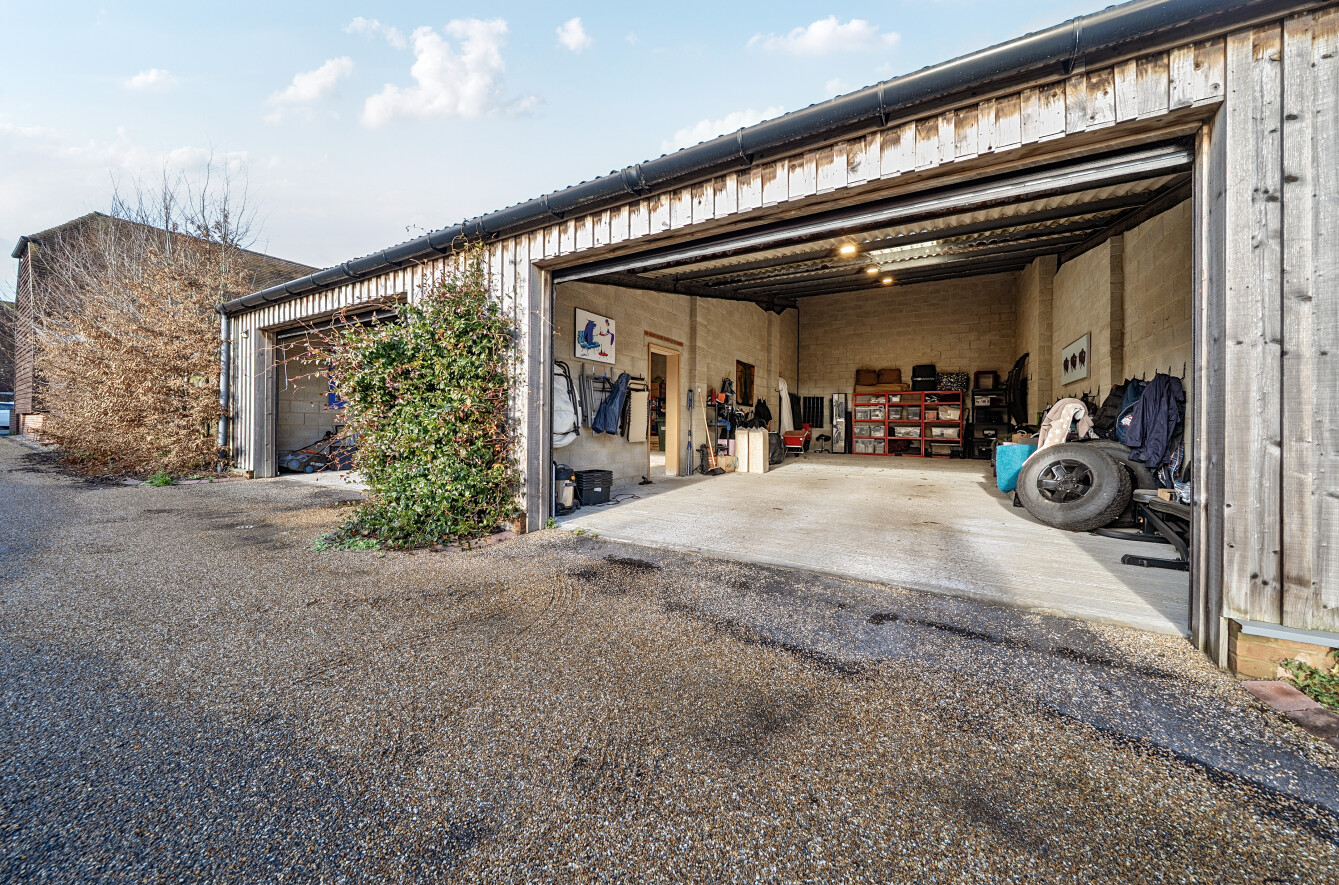 To the rear of the property sit two exceptionally large garages. The garages form part of a larger building held under separate ownership and are offered on a long lease (120 years from 5 December 2019; expiring 2139).