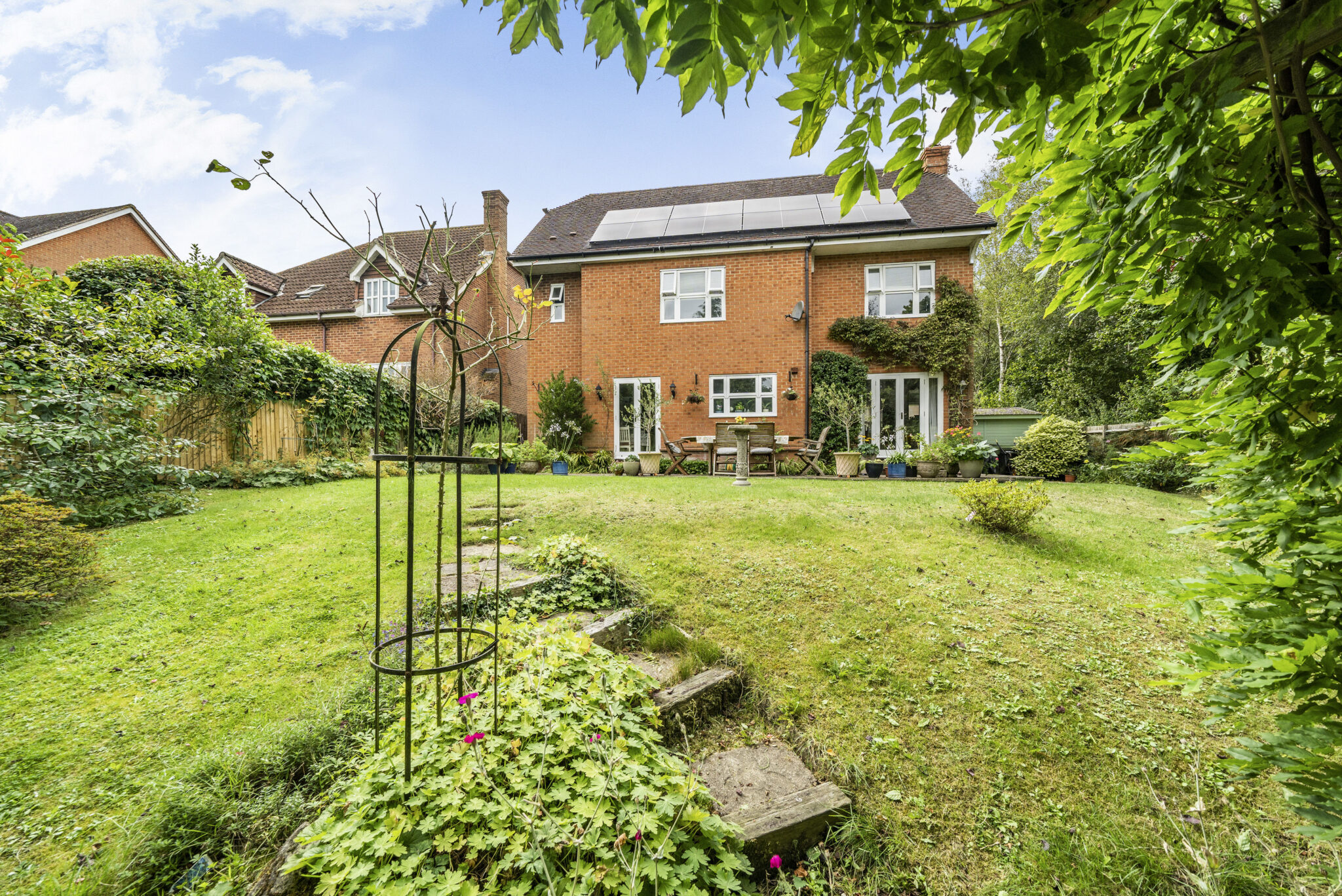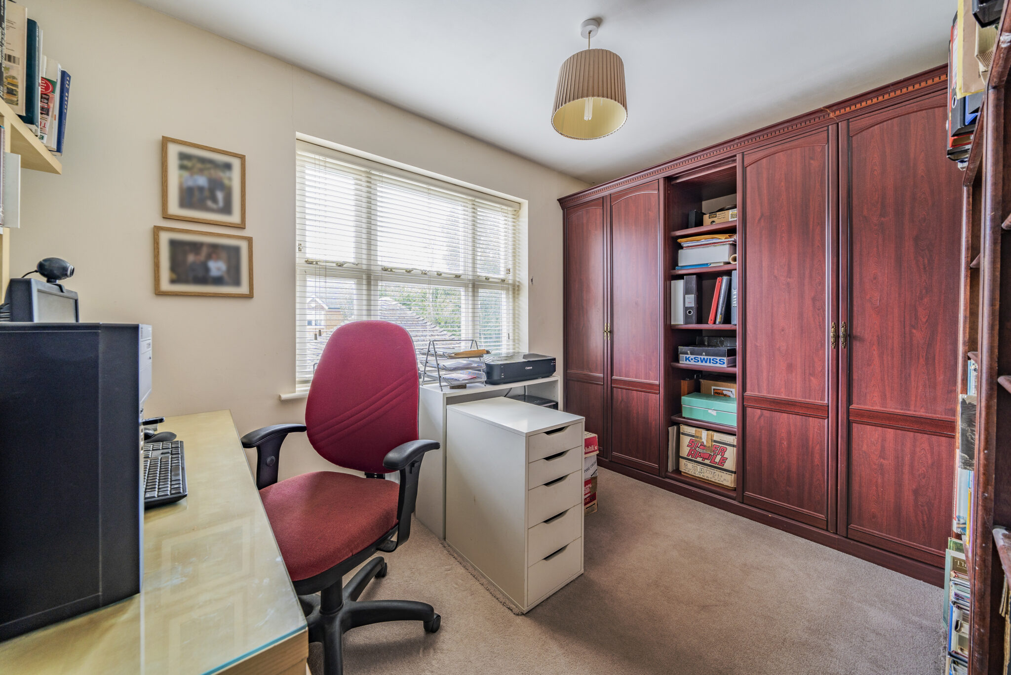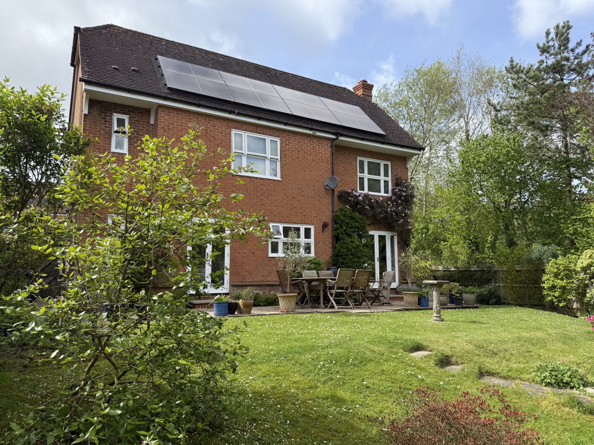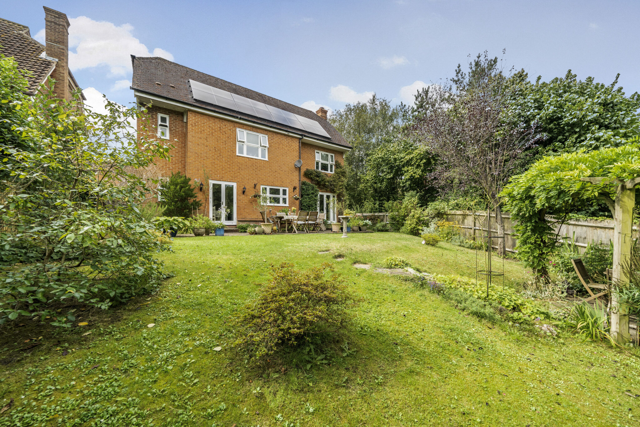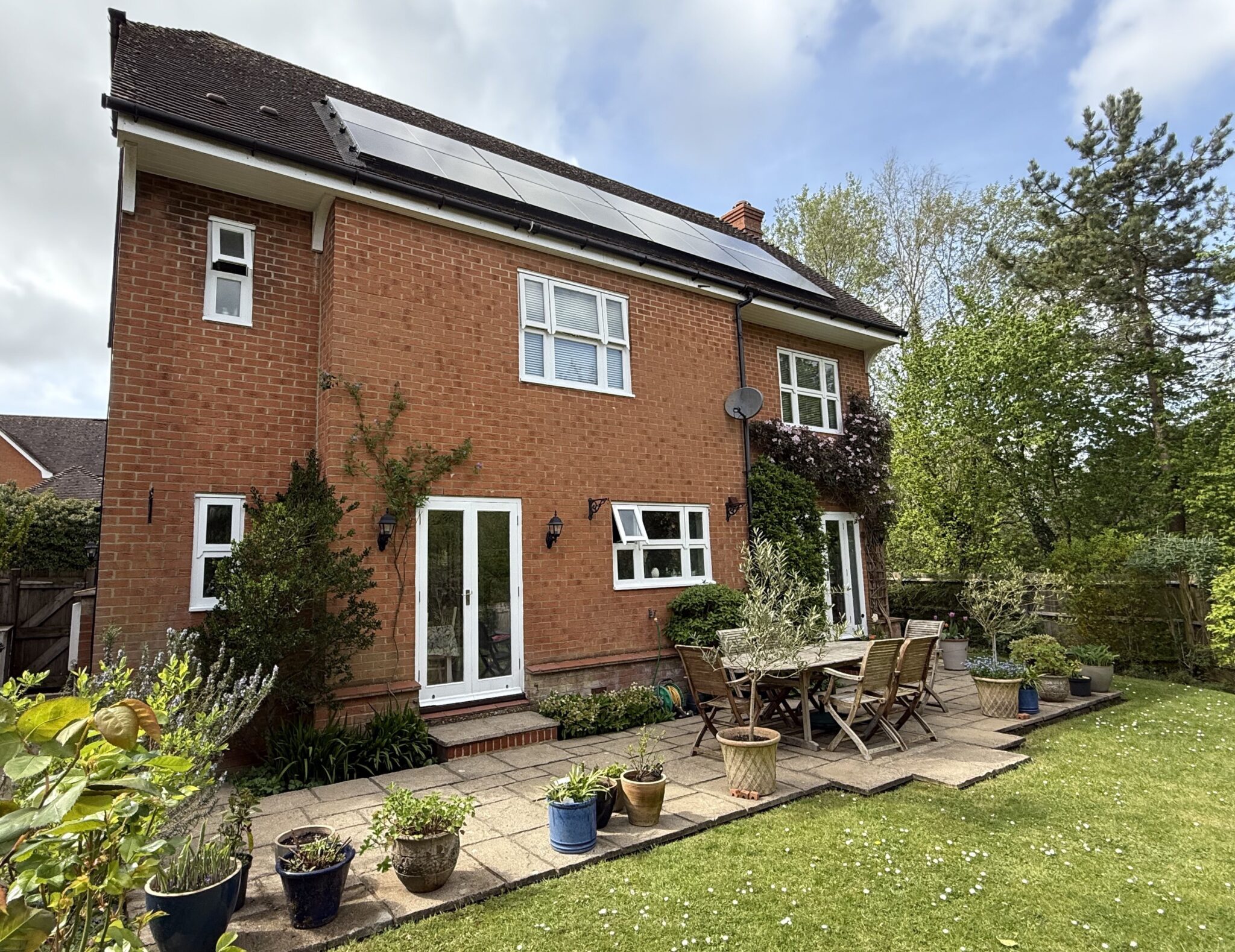 To the first floor there are four double bedrooms, the principal bedroom benefiting from an ensuite shower room and fitted storage. One of the bedrooms is currently arranged as a study, and the remaining bedrooms all provide built-in wardrobes. The family bathroom comprises bath with shower over, WC, pedestal wash basin and useful storage cupboard. From the landing there is access to a large insulated and part-boarded loft space, also housing the solar panel battery and inverter.