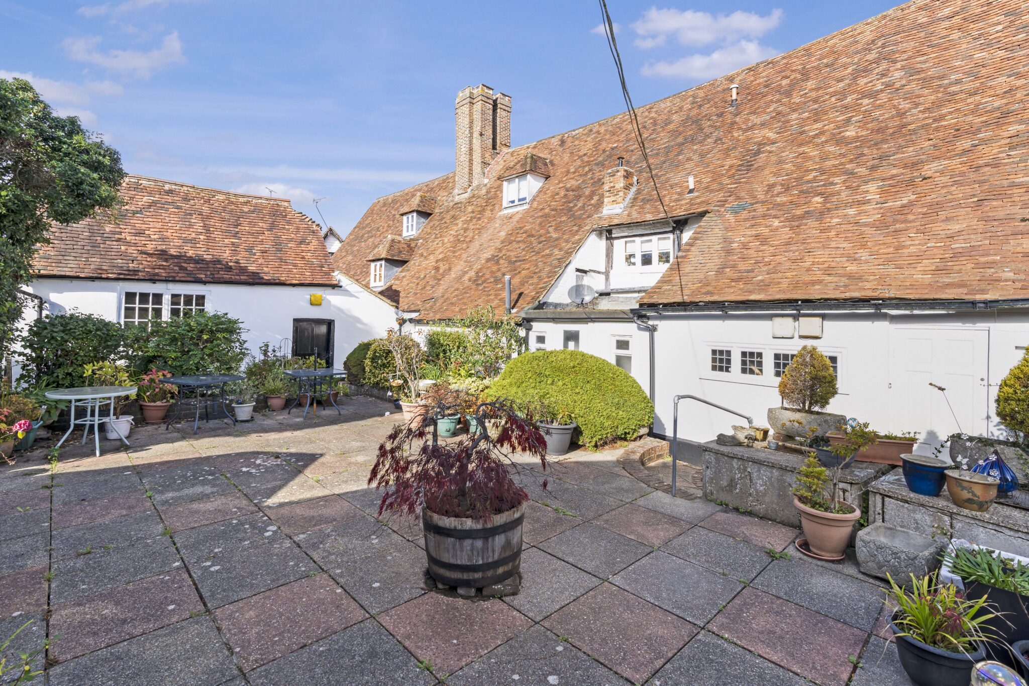 A significant Grade I Listed high Street residence, retaining an abundance of period features, formerly the well known Ye Maydes restaurant, combining a four bedroom family home and a ground floor former commercial concern, planning permission has been granted for conversion into two, three bedroom residential properties, with courtyard style gardens and parking, all occupying a prominent high street location within this popular and picturesque Wealden village. Cranbrook School catchment area.