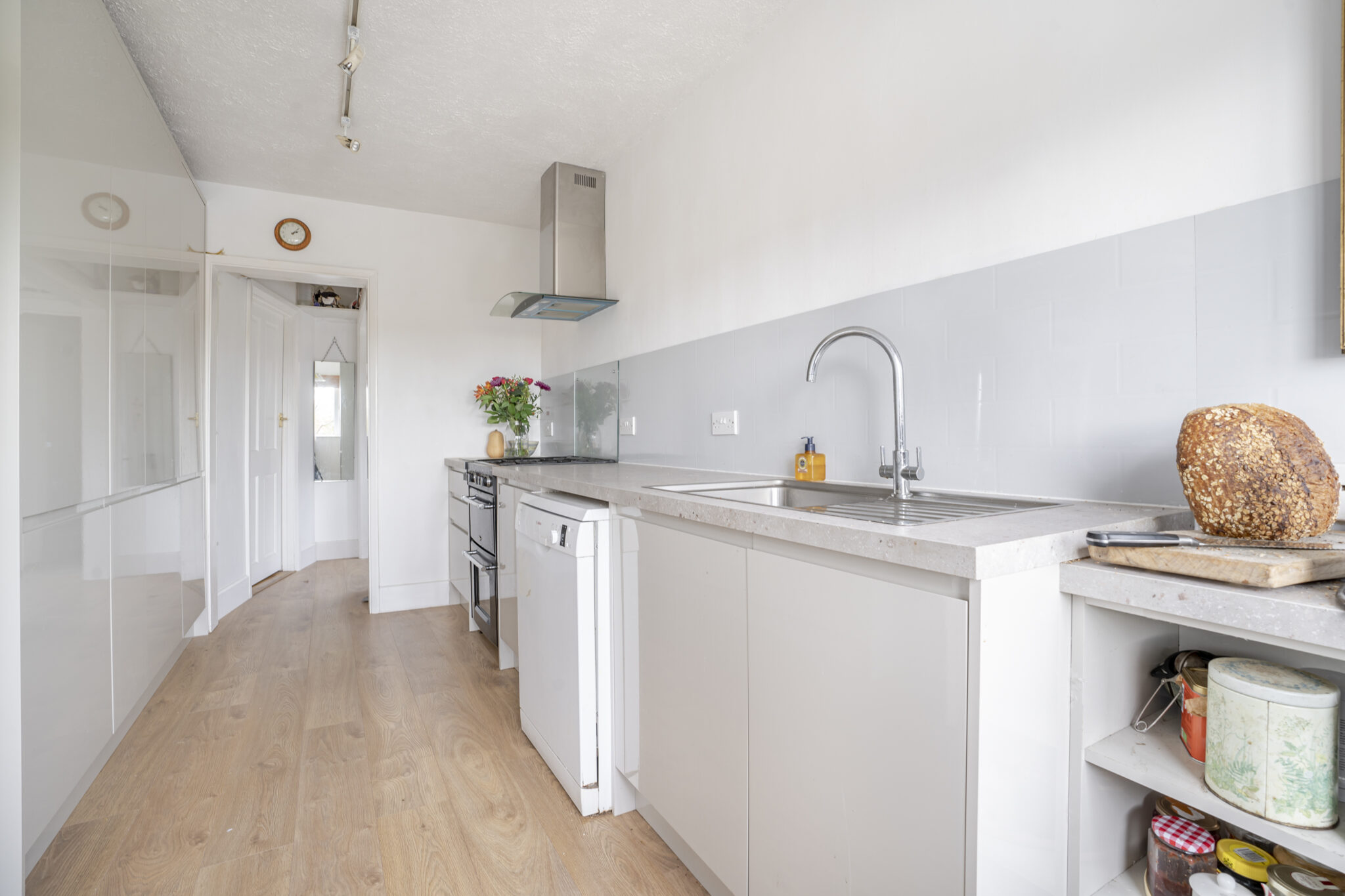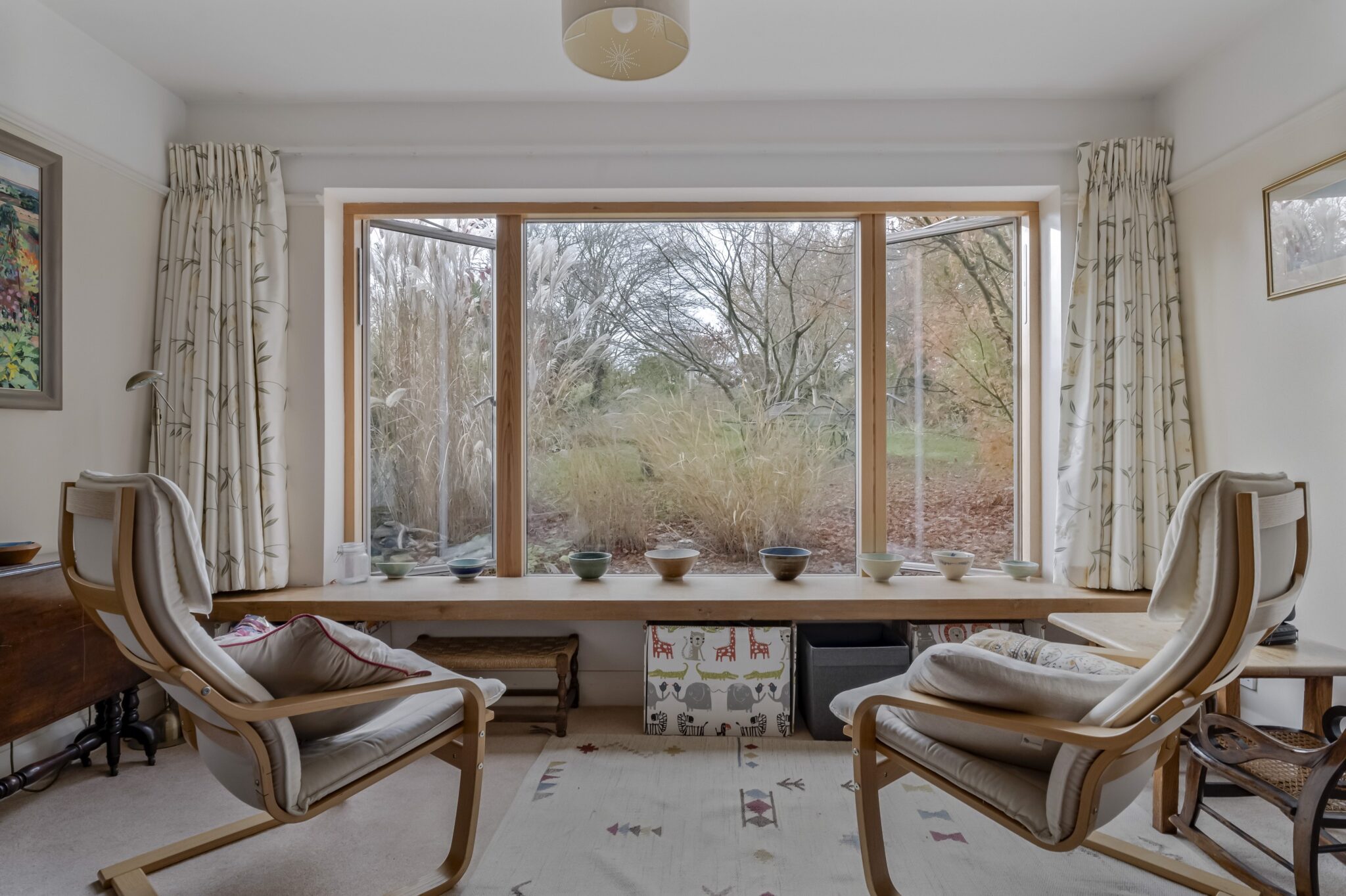 Beverley is an individual, detached, family house with 1950s origins and a significant two storey later addition. The interior ground floor layout could offer scope for reconfiguration, subject to obtaining any relevant consents and if so desired. Features include three separate reception rooms comprising a sitting room with a fireplace housing a wood-burning stove and pleasant aspect to rear out across the garden, a dining room with open fireplace and bay window to front. The family room with oak floor, was formerly the kitchen, with aspect to rear incorporating a sliding door to the garden. A useful study also overlooks the rear garden with direct access to outside. The kitchen/breakfast room has recently been updated with Howden gloss fronted units and drawers including a pull out larder style cupboard and bins, Farmhouse Belling gas fired cooker with filter hood over, space an plumbing for dishwasher and an aspect to front.